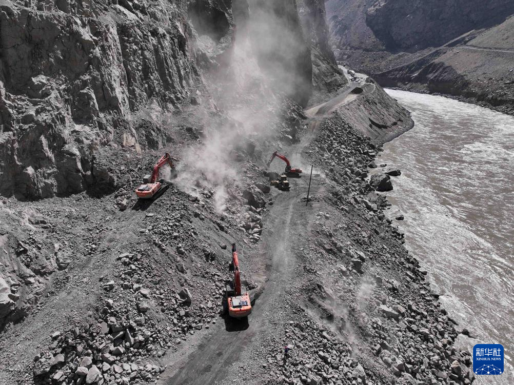 恶劣天气之外,二期项目还面临更为险恶的地质条件:山势险峻且垂直落差极大,地质条件多为风化页岩,多处地段是泥石流和山体塌方高发区;边坡陡峭,最高开挖线与路面的垂直距离高达76米。另外,由于这条公路是连接中塔两国的唯一陆上通道,必须做到同时确保道路通畅和不间断施工……